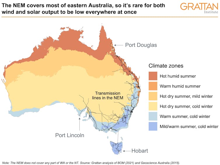 First, many sunny and windy places are located at the edges of the NEM states. If wind and solar plants were built there, transmission would be needed to connect them to the network.