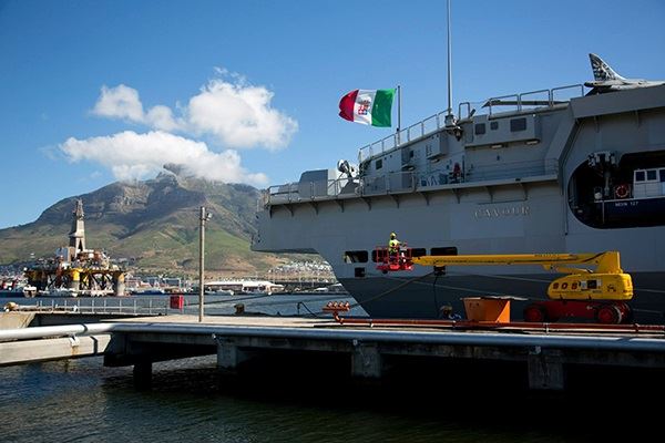 Glamour and passion set the Cape Town Harbour ablaze as Pirelli celebrated An Italian Love Affair and the launch of the 2014 edition of their iconic Calendar. On the 7th February 2014, guests gathered on the Cavour Aircraft Carrier for a magical night of Italian allure and flair on the glimmering ocean, as embodied by the spectacular 50th Anniversary Edition of the famed Pirelli Calendar.