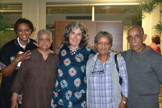Neville Alexander's family members with PRAESA director, Carole Bloch. Irma Karriem, Myrtle Karriem, Carole Bloch, Jeanette Masala andFrederick Alexander.