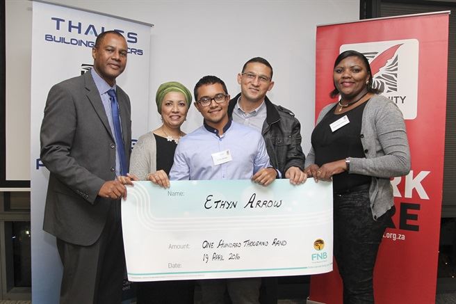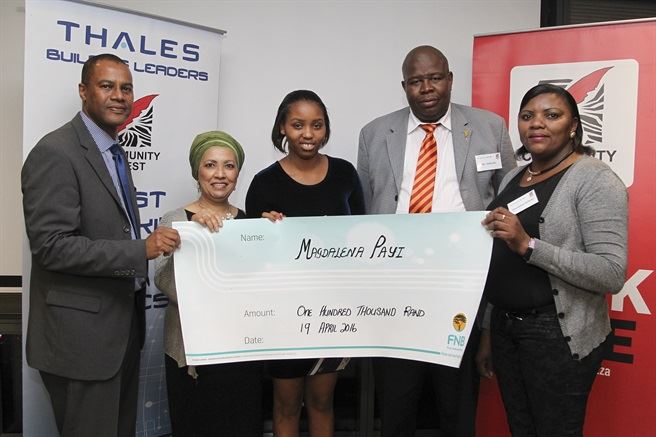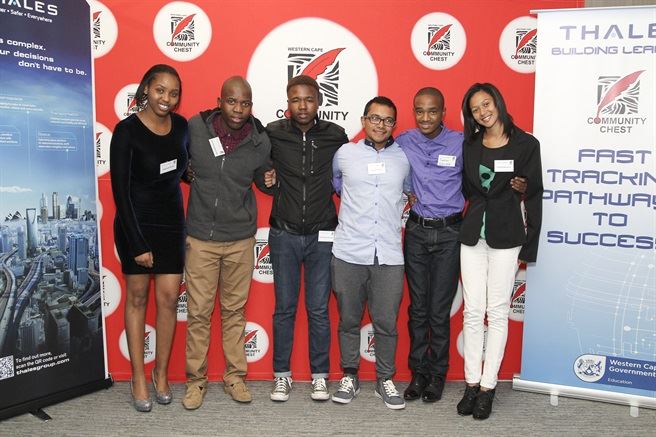 Thales' CEO Justice Tootla, Magdalena Payi, Wonke Mahlombe, Sinethemba Matutu and Community Chest’s CEO Lorenzo Davids