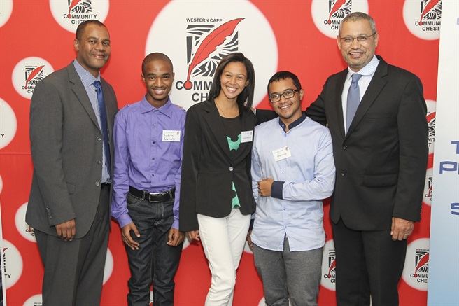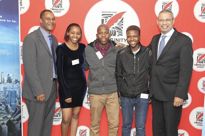 Thale’s CEO Justice Tootla, Faybian Arendse, Hazelle Booysen, Ethyn Arrow and Community Chest’s CEO Lorenzo Davids