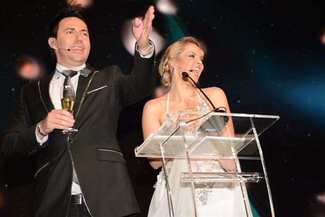 Martin Bester and Nadia Beukes drink a toast to Pendoring’s 20th birthday.