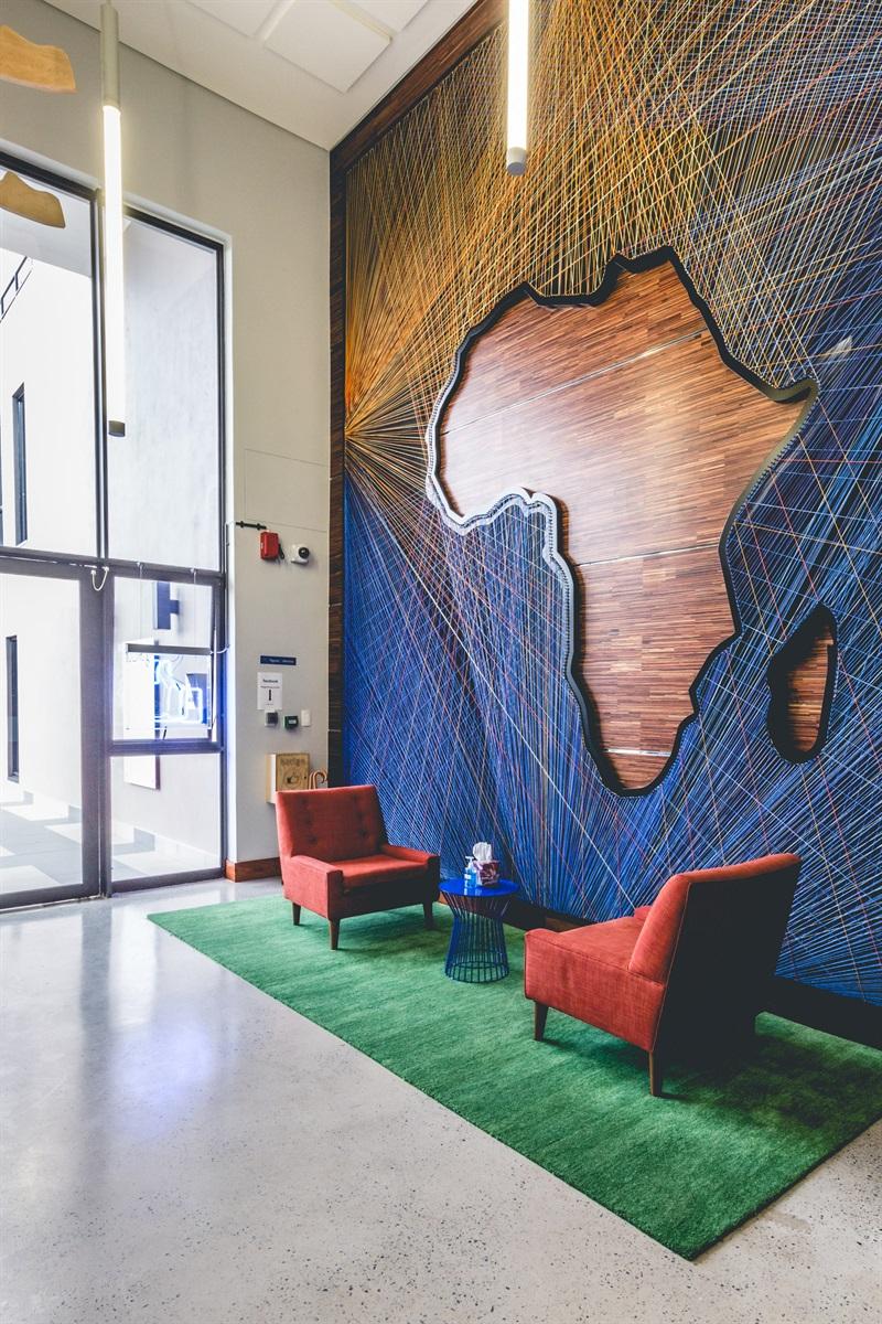 Facebook recently lifted the curtain to its brand new African office in Johannesburg. As part of its Artists in Residency programme, Facebook enlisted the help of three local artists (Cameron Platter, Hlengiwe Dube, and Lyndi Sales) in creating the office's artwork.